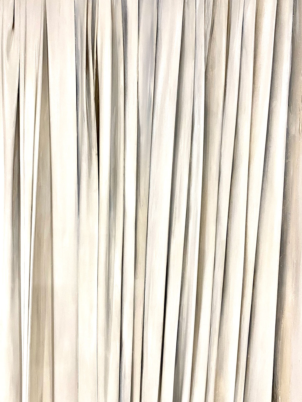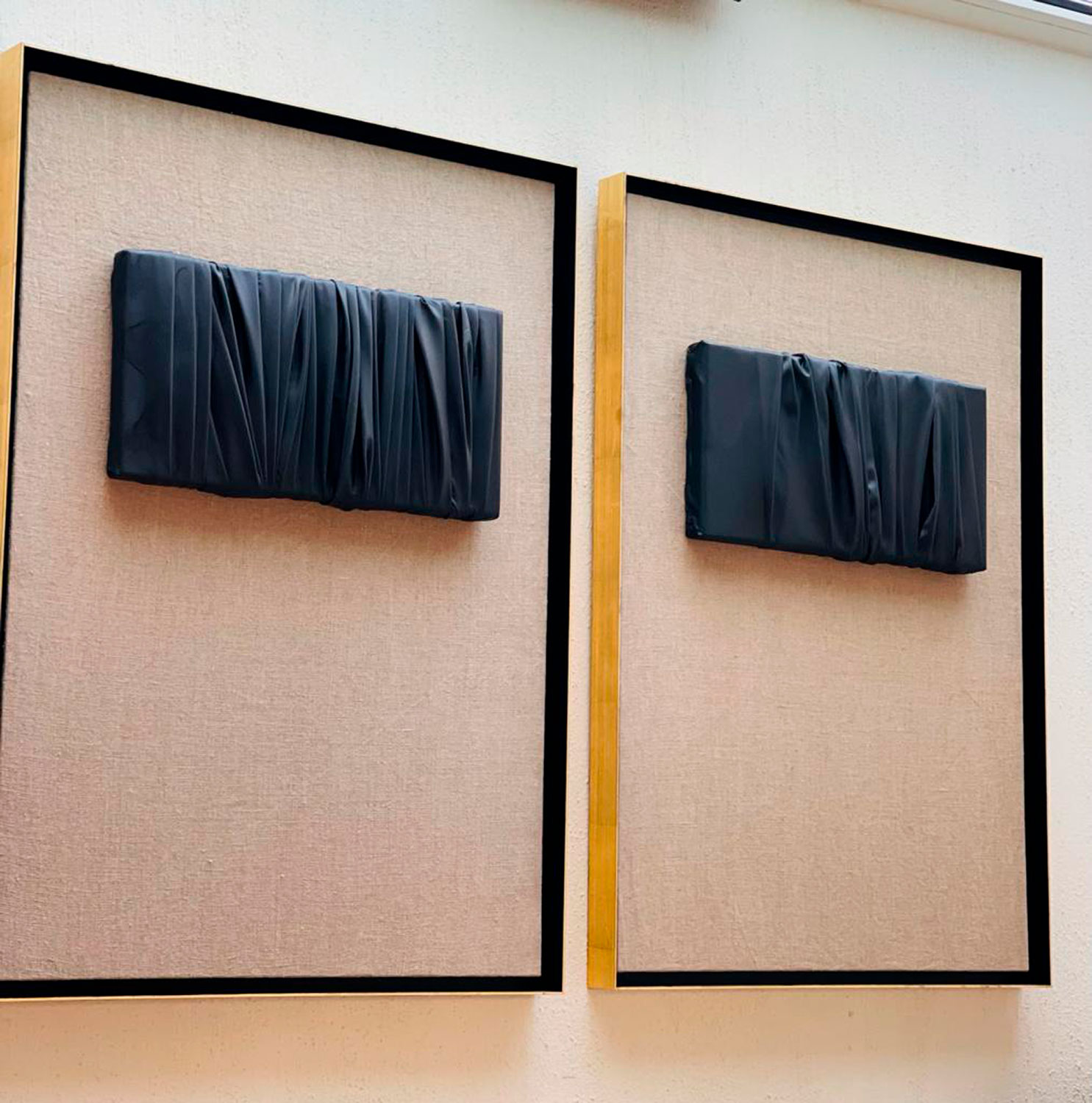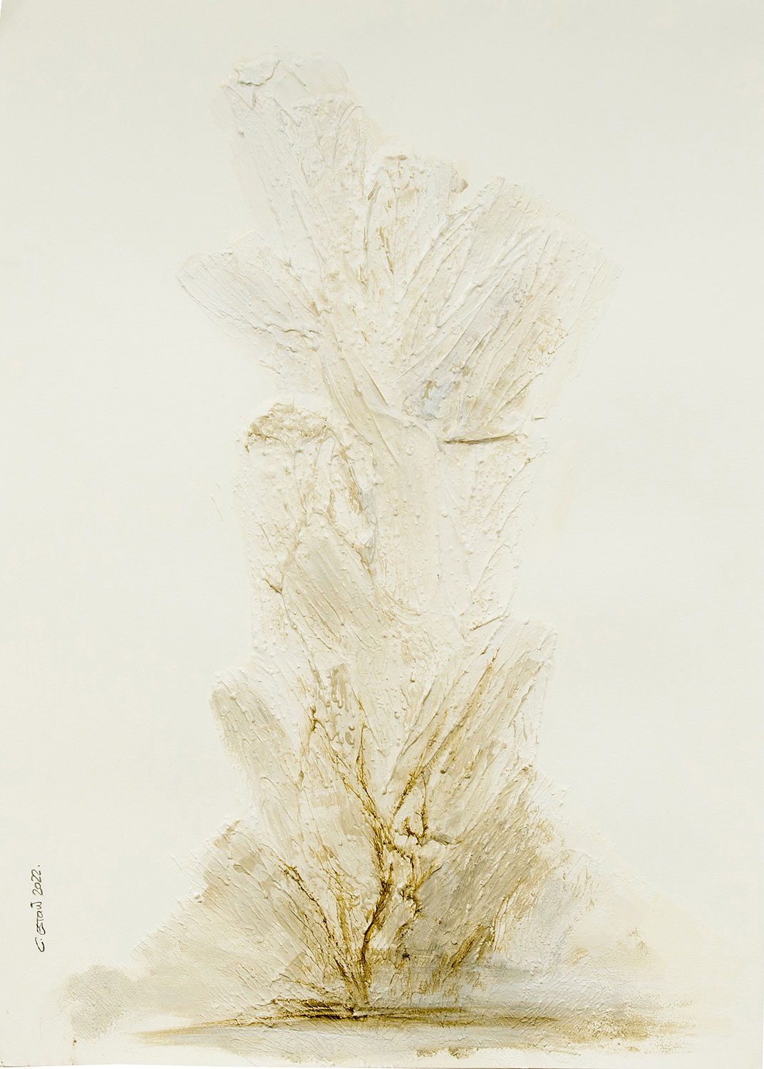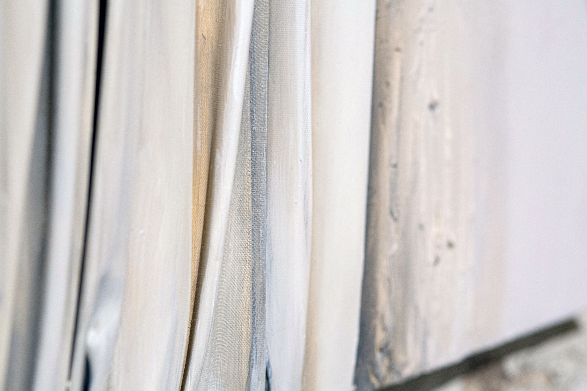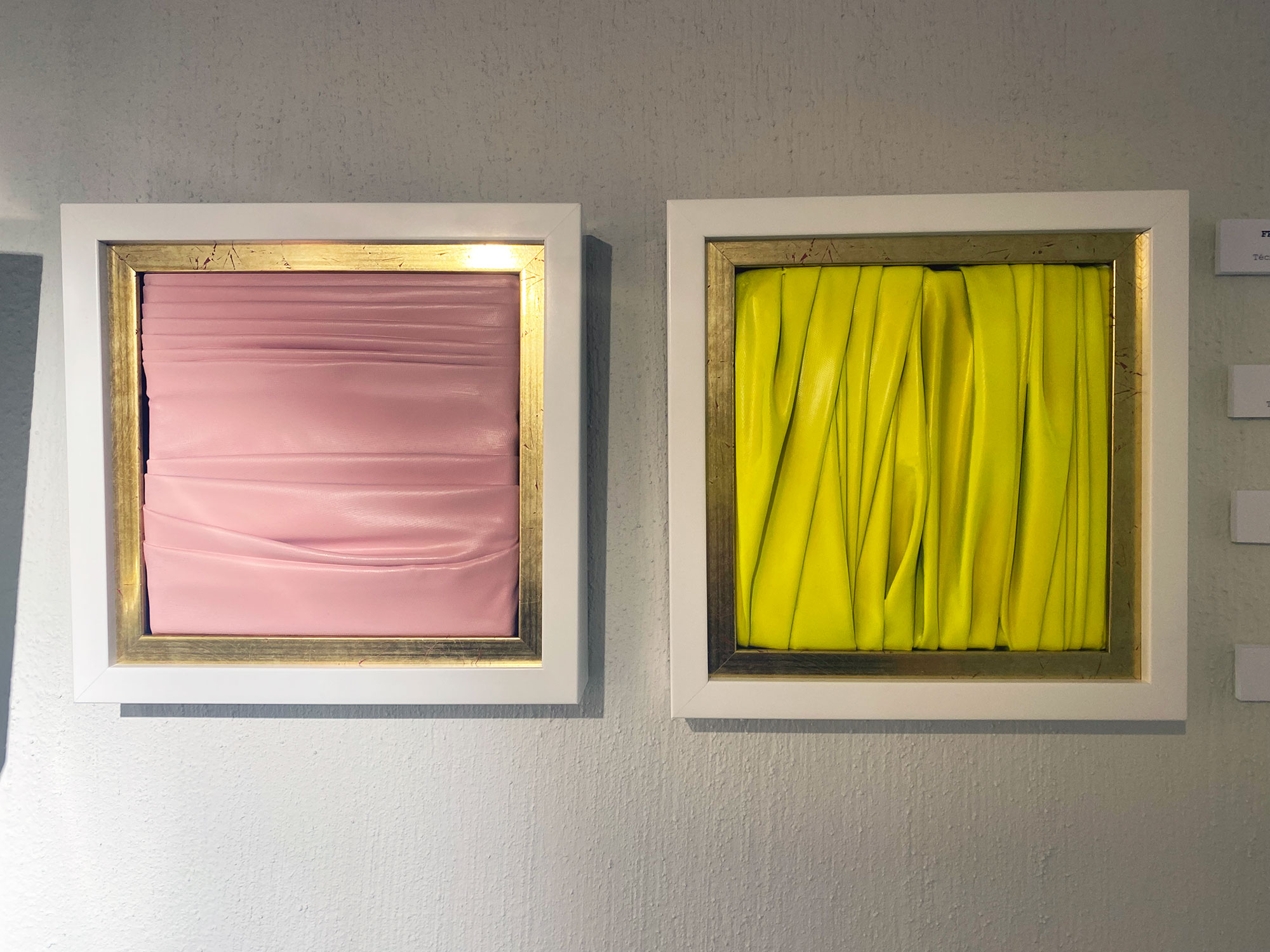 De naturaleza arquitectónica, tejido esculpido sobre tabla o lienzo, pliegues, volúmenes, profundidad, luces y sombras, recrean, arcos, capiteles, columnas y piedra.