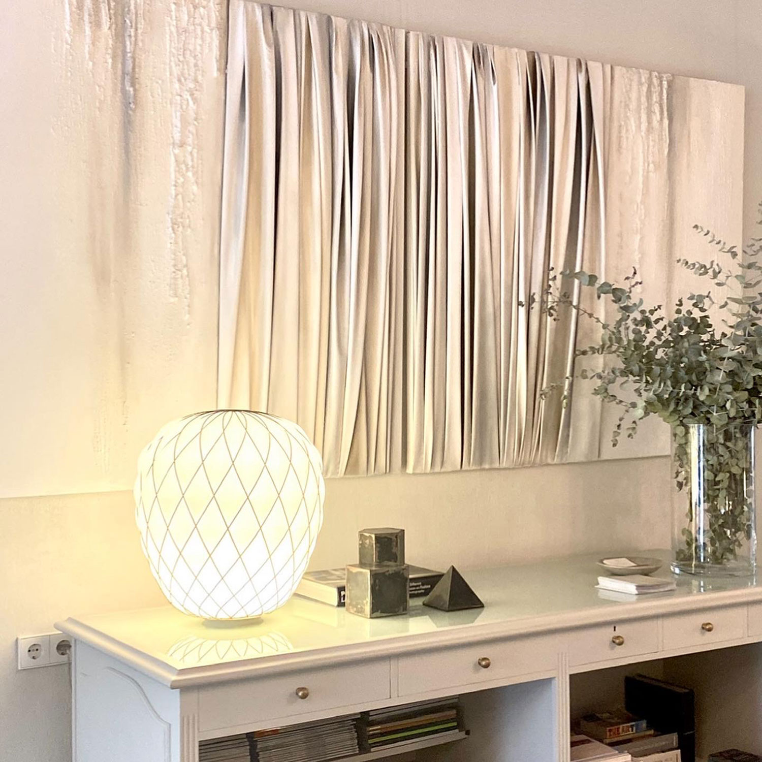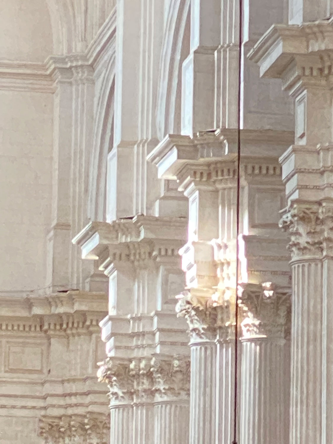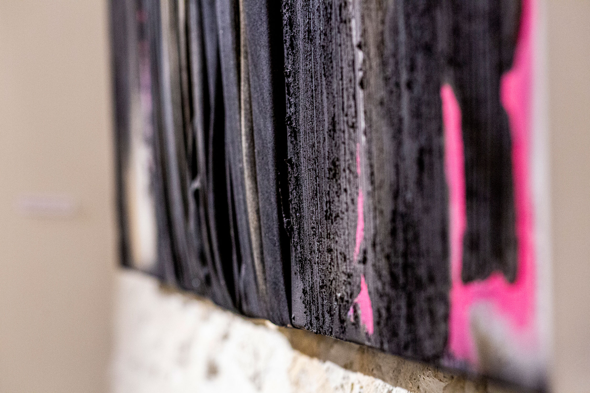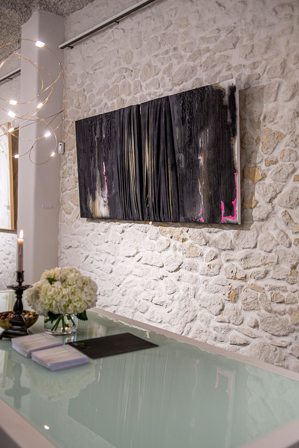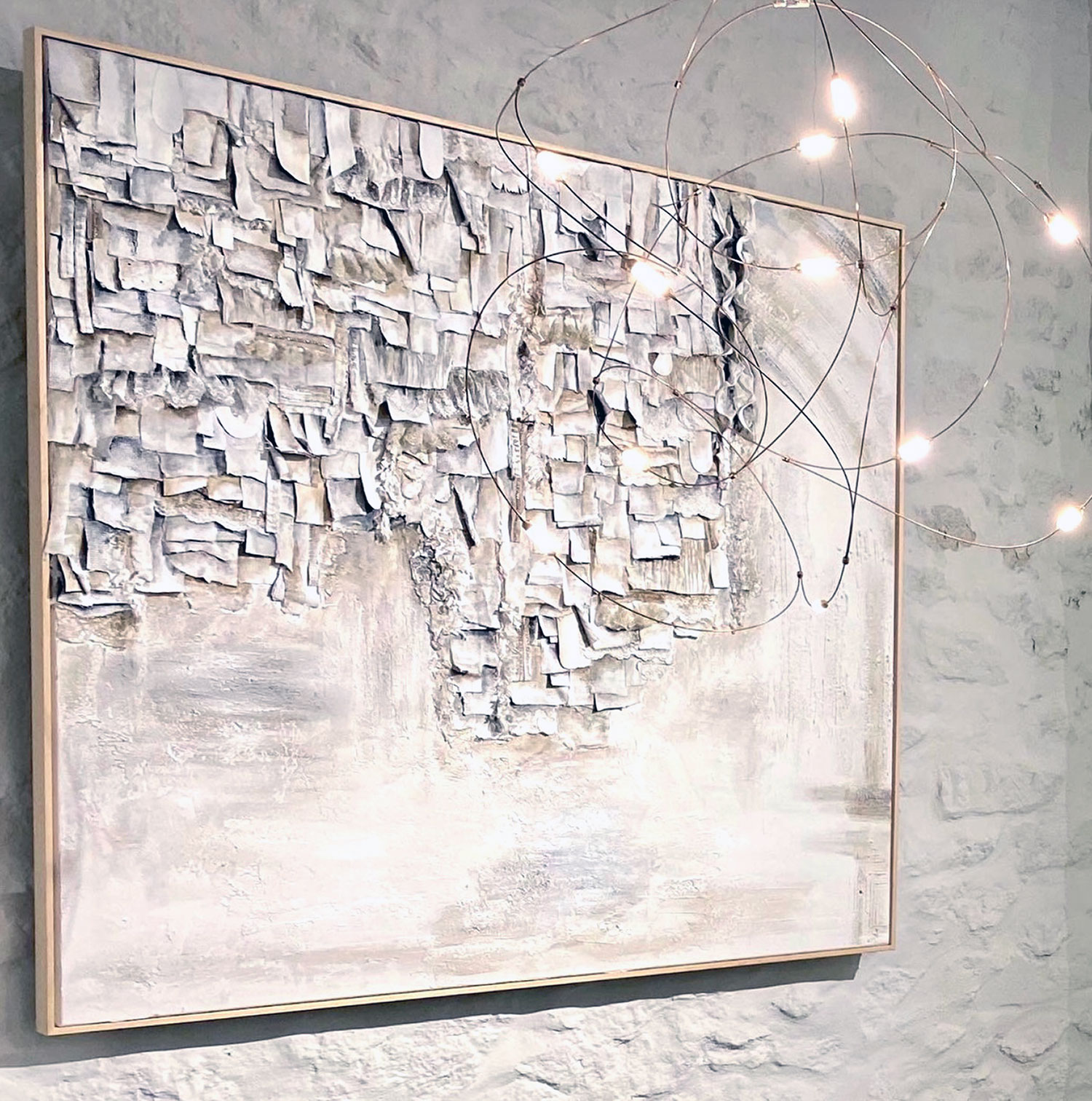 De naturaleza arquitectónica, tejido esculpido sobre tabla o lienzo, pliegues, volúmenes, profundidad, luces y sombras, recrean, arcos, capiteles, columnas y piedra.