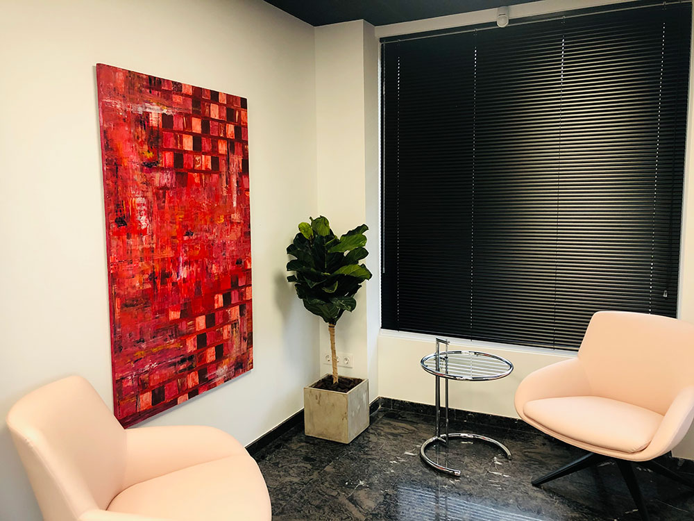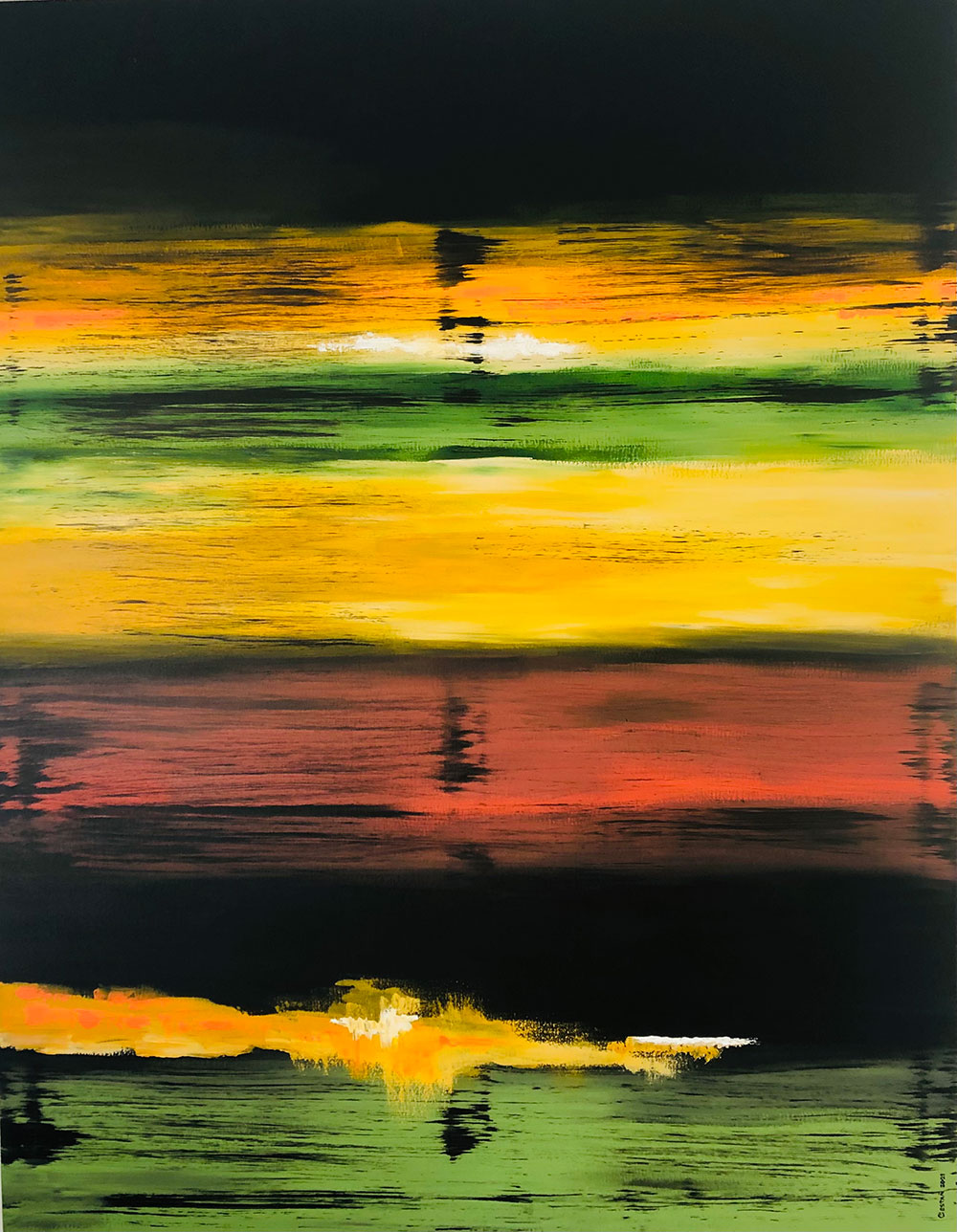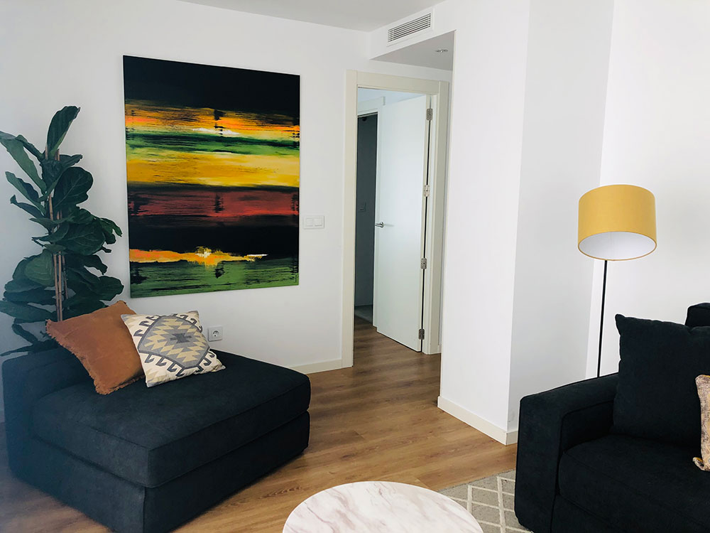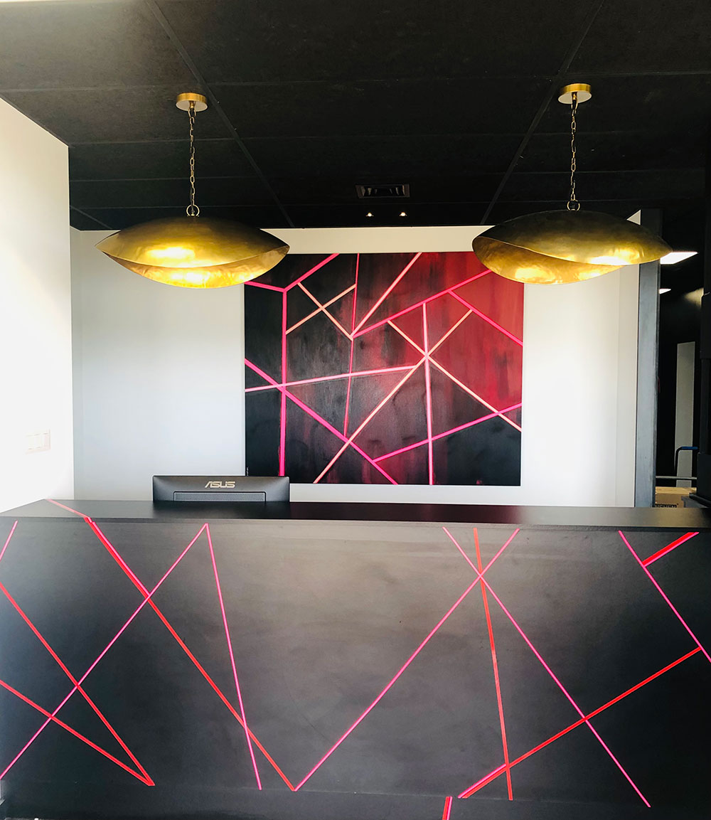 Trazo abstracto e indefinido con colores neutros, forman una base sobre la que destacan colores extremos o flúor con trazos geométricos muy marcados.